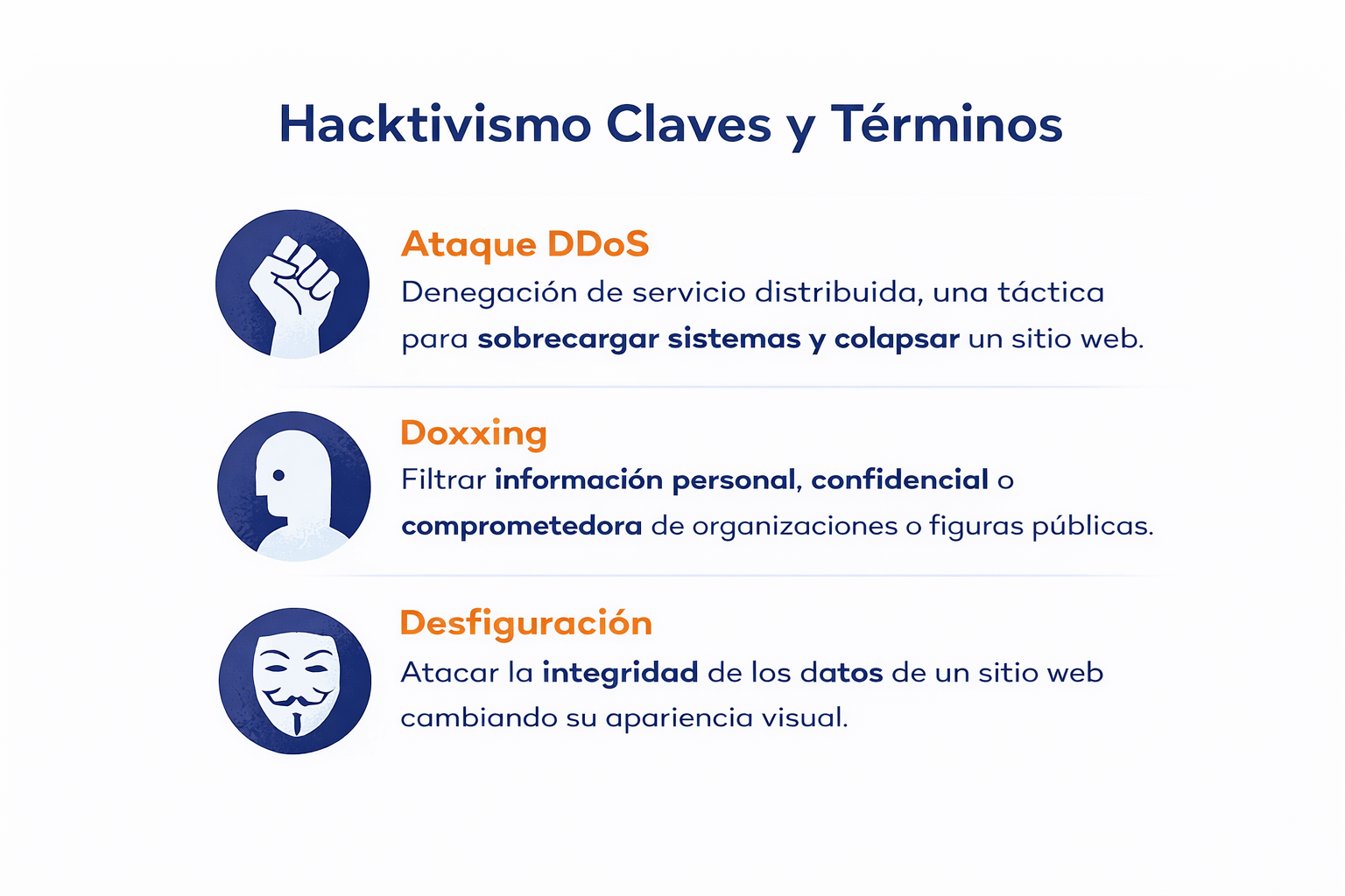El hacktivismo es una de las amenazas más impredecibles dentro del panorama actual de ciberseguridad. A diferencia del cibercrimen tradicional, no busca necesariamente beneficios económicos, sino generar impacto mediático, presión política o daño reputacional.